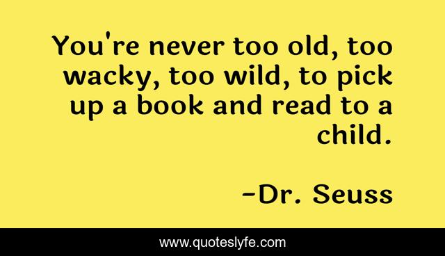 This page presents the quote "You're never too old, too wacky, too wild, to pick up a book and read to a child.". Author of this quote is Dr. Seuss. This quote is about funny, dr-seuss, kids, quote, reading, comedy,.
