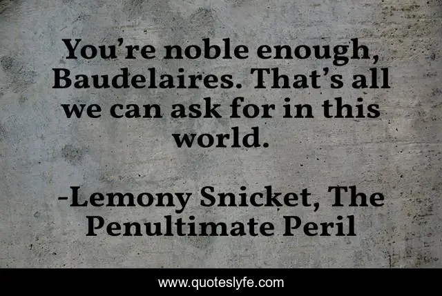 "Lemony Snicket, The Penultimate Peril Quotes." Quoteslyfe.com, 2025. Sun. 07 Dec. 2025. <https://www.quoteslyfe.com/quote/You-re-noble-enough-Baudelaires-That-s-173838>.