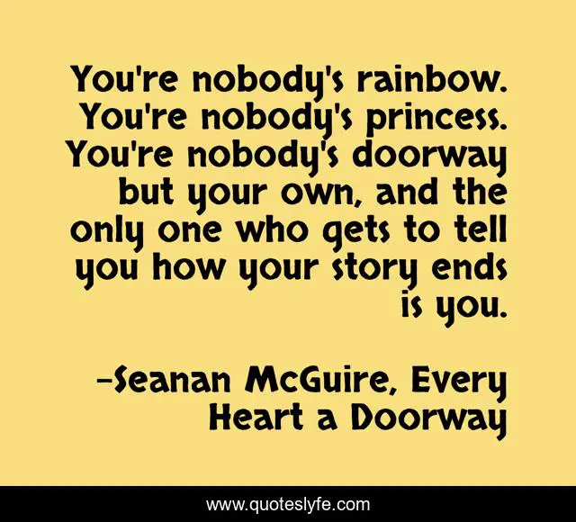 "Seanan McGuire, Every Heart a Doorway Quotes." Quoteslyfe.com, 2025. Fri. 05 Dec. 2025. <https://www.quoteslyfe.com/quote/You-re-nobody-s-rainbow-You-re-20177>.