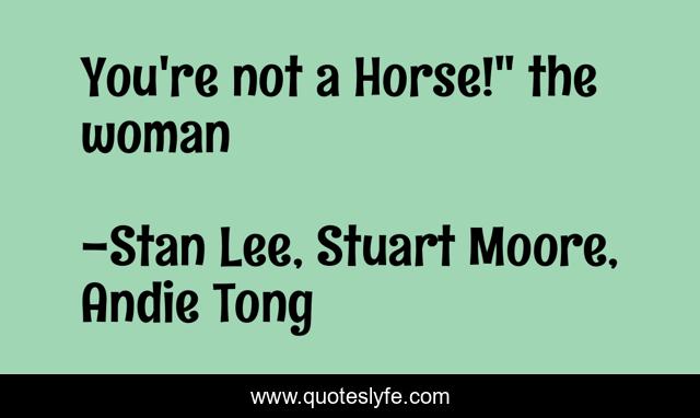 "Stan Lee, Stuart Moore, Andie Tong Quotes." Quoteslyfe.com, 2025. Sat. 06 Dec. 2025. <https://www.quoteslyfe.com/quote/You-re-not-a-Horse-the-woman-162974>.
