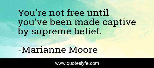 This page presents the quote "You're not free until you've been made captive by supreme belief.". Author of this quote is Marianne Moore. This quote is about faith, unity,.