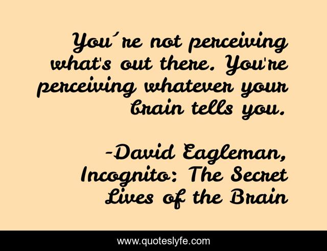 "David Eagleman, Incognito: The Secret Lives of the Brain Quotes." Quoteslyfe.com, 2025. Fri. 05 Dec. 2025. <https://www.quoteslyfe.com/quote/You-re-not-perceiving-what-s-out-225884>.