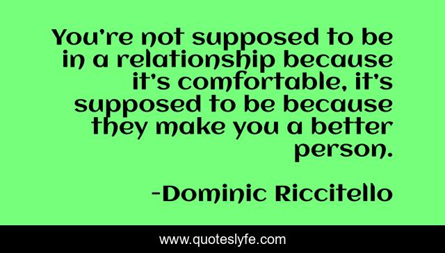 This page presents the quote "You’re not supposed to be in a relationship because it’s comfortable, it’s supposed to be because they make you a better person.". Author of this quote is Dominic Riccitello. This quote is about two-people, love, help, relationship, quote, advice, understanding, feelings, thoughts,.