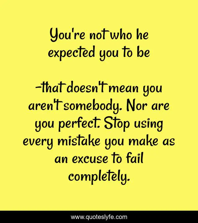 "that doesn't mean you aren't somebody. Nor are you perfect. Stop using every mistake you make as an excuse to fail completely. Quotes." Quoteslyfe.com, 2025. Fri. 05 Dec. 2025. <https://www.quoteslyfe.com/quote/You-re-not-who-he-expected-you-144976>.