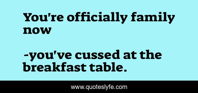 "you've cussed at the breakfast table. Quotes." Quoteslyfe.com, 2025. Sat. 06 Dec. 2025. <https://www.quoteslyfe.com/quote/You-re-officially-family-now-86229>.