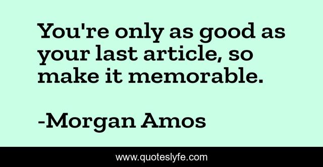 This page presents the quote "You're only as good as your last article, so make it memorable.". Author of this quote is Morgan Amos. This quote is about fictionnovel, author, fromthekillerseyes,.