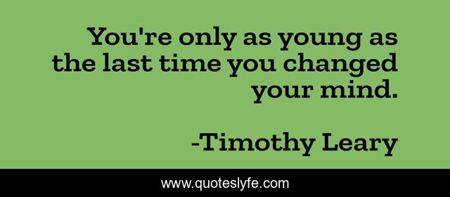 This page presents the quote "You're only as young as the last time you changed your mind.". Author of this quote is Timothy Leary. This quote is about mind, time,.