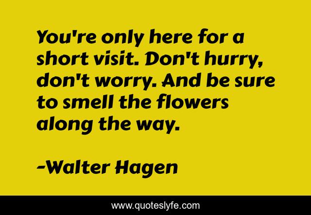 This page presents the quote "You're only here for a short visit. Don't hurry, don't worry. And be sure to smell the flowers along the way.". Author of this quote is Walter Hagen. This quote is about life, flowers, worry, happy,.