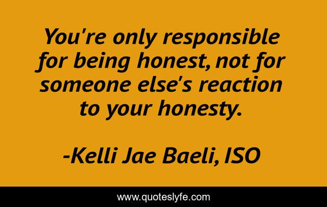 This page presents the quote "You're only responsible for being honest, not for someone else's reaction to your honesty.". Author of this quote is Kelli Jae Baeli, ISO. This quote is about relationships, reaction, honesty,.