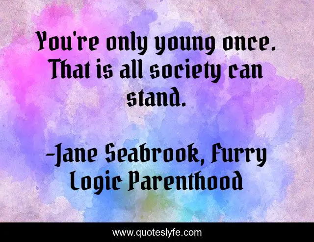 "Jane Seabrook, Furry Logic Parenthood Quotes." Quoteslyfe.com, 2025. Fri. 05 Dec. 2025. <https://www.quoteslyfe.com/quote/You-re-only-young-once-That-is-102325>.