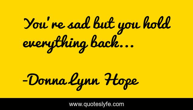This page presents the quote "You're sad but you hold everything back...". Author of this quote is Donna Lynn Hope. This quote is about sadness, censorship, sad,.