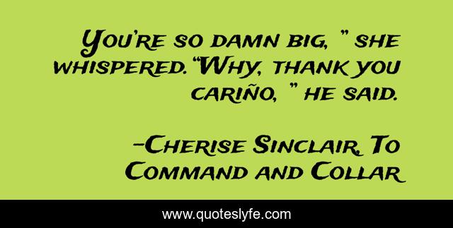 "Cherise Sinclair, To Command and Collar Quotes." Quoteslyfe.com, 2025. Mon. 08 Dec. 2025. <https://www.quoteslyfe.com/quote/You-re-so-damn-big-she-whispered-55887>.