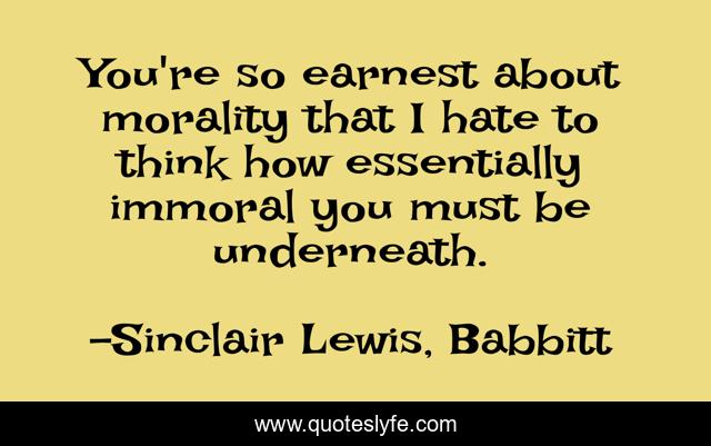 "Sinclair Lewis, Babbitt Quotes." Quoteslyfe.com, 2025. Fri. 05 Dec. 2025. <https://www.quoteslyfe.com/quote/You-re-so-earnest-about-morality-that-164246>.