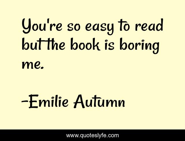 This page presents the quote "You're so easy to read but the book is boring me.". Author of this quote is Emilie Autumn. This quote is about opheliac, lyrics, truth,.
