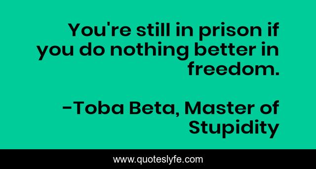 "Toba Beta, Master of Stupidity Quotes." Quoteslyfe.com, 2025. Fri. 05 Dec. 2025. <https://www.quoteslyfe.com/quote/You-re-still-in-prison-if-you-54485>.