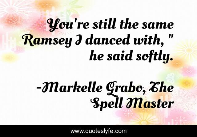 This page presents the quote "You're still the same Ramsey I danced with, " he said softly.". Author of this quote is Markelle Grabo, The Spell Master. This quote is about fantasy, elves, nathan, affection, love,.