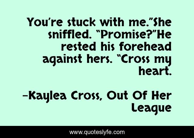 This page presents the quote "You’re stuck with me.”She sniffled. “Promise?”He rested his forehead against hers. “Cross my heart.". Author of this quote is Kaylea Cross, Out Of Her League. This quote is about romance, love, affection, romantic-suspense,.