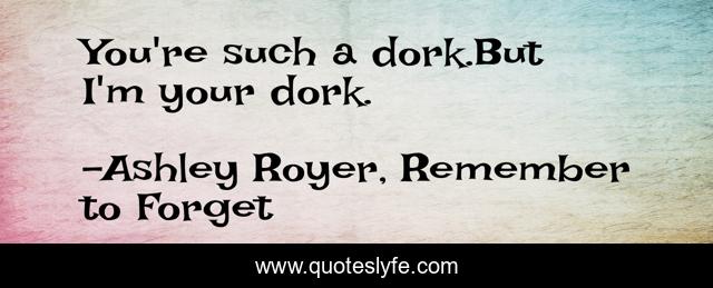 "Ashley Royer, Remember to Forget Quotes." Quoteslyfe.com, 2025. Fri. 05 Dec. 2025. <https://www.quoteslyfe.com/quote/You-re-such-a-dork-But-I-148483>.