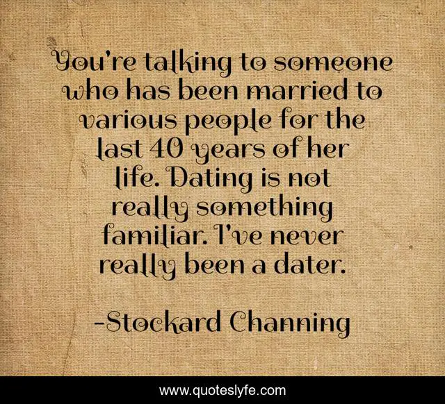 This page presents the quote "You're talking to someone who has been married to various people for the last 40 years of her life. Dating is not really something familiar. I've never really been a dater.". Author of this quote is Stockard Channing. This quote is about life, people,.