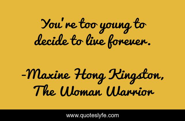 "Maxine Hong Kingston, The Woman Warrior Quotes." Quoteslyfe.com, 2025. Sun. 07 Dec. 2025. <https://www.quoteslyfe.com/quote/You-re-too-young-to-decide-to-181645>.