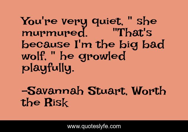 This page presents the quote "You're very quiet, " she murmured. "That's because I'm the big bad wolf, " he growled playfully.". Author of this quote is Savannah Stuart, Worth the Risk. This quote is about paranormal-romance, shifter-romance,.