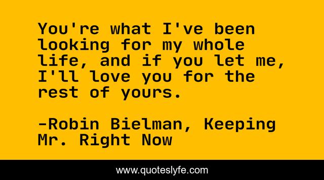 "Robin Bielman, Keeping Mr. Right Now Quotes." Quoteslyfe.com, 2025. Sat. 06 Dec. 2025. <https://www.quoteslyfe.com/quote/You-re-what-I-ve-been-looking-18208>.