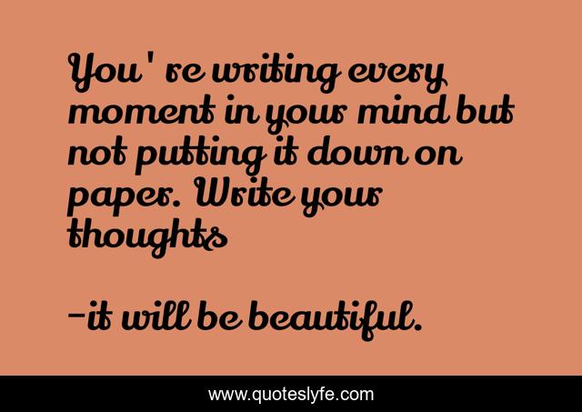 This page presents the quote "You're writing every moment in your mind but not putting it down on paper. Write your thoughts". Author of this quote is it will be beautiful.. .