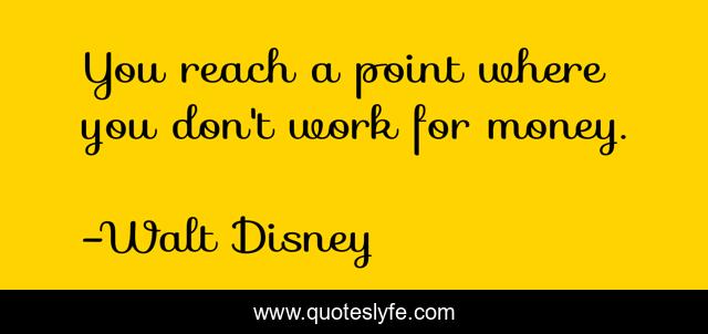 This page presents the quote "You reach a point where you don't work for money.". Author of this quote is Walt Disney. This quote is about money, reach,.