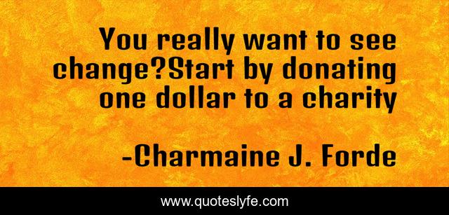 This page presents the quote "You really want to see change?Start by donating one dollar to a charity". Author of this quote is Charmaine J. Forde. This quote is about donate, change, charity,.