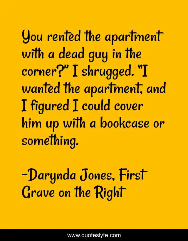"Darynda Jones, First Grave on the Right Quotes." Quoteslyfe.com, 2025. Mon. 08 Dec. 2025. <https://www.quoteslyfe.com/quote/You-rented-the-apartment-with-a-dead-184133>.