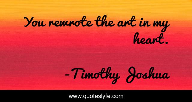 "Timothy Joshua Quotes." Quoteslyfe.com, 2025. Mon. 08 Dec. 2025. <https://www.quoteslyfe.com/quote/You-rewrote-the-art-in-my-heart-81339>.