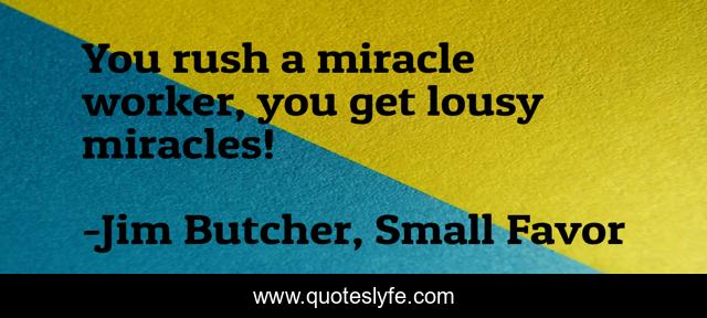 "Jim Butcher, Small Favor Quotes." Quoteslyfe.com, 2025. Sat. 06 Dec. 2025. <https://www.quoteslyfe.com/quote/You-rush-a-miracle-worker-you-get-6704>.