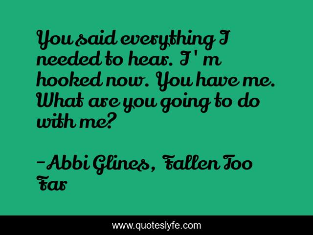 This page presents the quote "You said everything I needed to hear. I'm hooked now. You have me. What are you going to do with me?". Author of this quote is Abbi Glines, Fallen Too Far. .