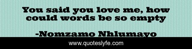 This page presents the quote "You said you love me, how could words be so empty". Author of this quote is Nomzamo Nhlumayo. This quote is about betrayed, heart-broken, hurt,.