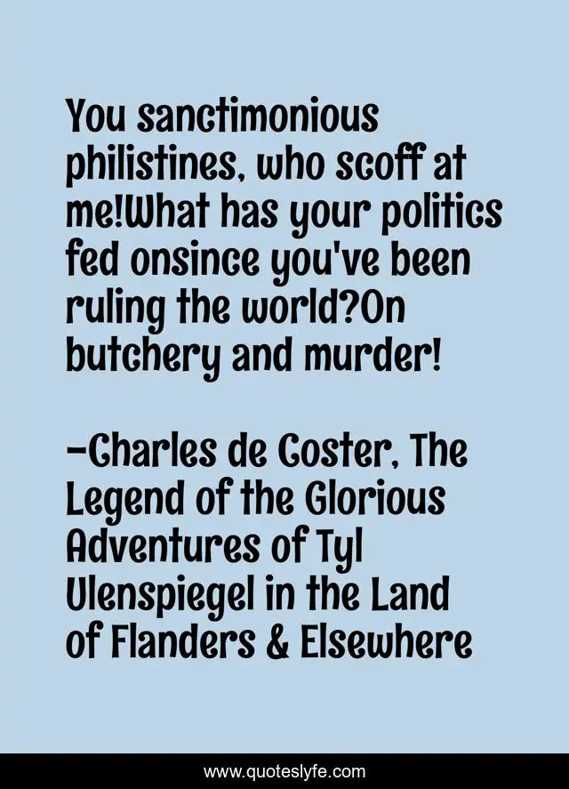 "Charles de Coster, The Legend of the Glorious Adventures of Tyl Ulenspiegel in the Land of Flanders & Elsewhere Quotes." Quoteslyfe.com, 2025. Mon. 08 Dec. 2025. <https://www.quoteslyfe.com/quote/You-sanctimonious-philistines-who-scoff-at-me-244440>.