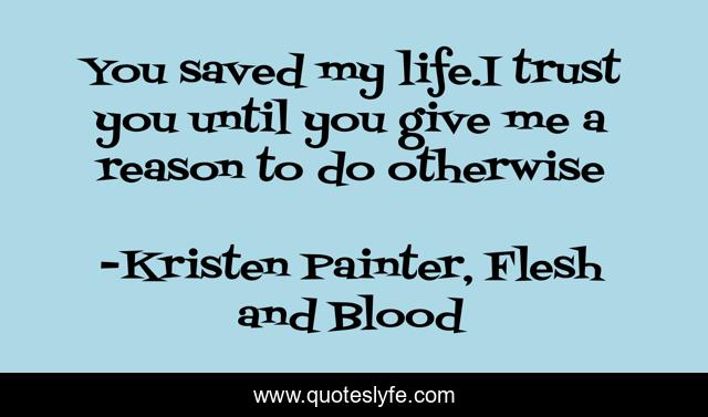 This page presents the quote "You saved my life.I trust you until you give me a reason to do otherwise". Author of this quote is Kristen Painter, Flesh and Blood. This quote is about life-philosophy, trust,.