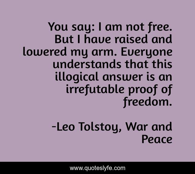This page presents the quote "You say: I am not free. But I have raised and lowered my arm. Everyone understands that this illogical answer is an irrefutable proof of freedom.". Author of this quote is Leo Tolstoy, War and Peace. This quote is about freedom, free-will,.