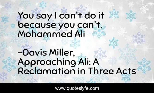"Davis Miller, Approaching Ali: A Reclamation in Three Acts Quotes." Quoteslyfe.com, 2025. Fri. 05 Dec. 2025. <https://www.quoteslyfe.com/quote/You-say-I-can-t-do-it-64902>.