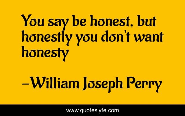 This page presents the quote "You say be honest, but honestly you don't want honesty". Author of this quote is William Joseph Perry. .