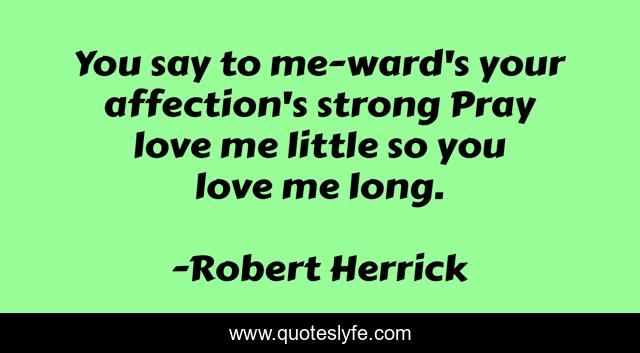 This page presents the quote "You say to me-ward's your affection's strong Pray love me little so you love me long.". Author of this quote is Robert Herrick. This quote is about love, affection,.