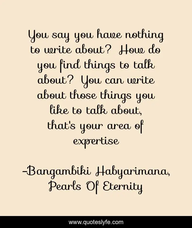 "Bangambiki Habyarimana, Pearls Of Eternity Quotes." Quoteslyfe.com, 2025. Sat. 06 Dec. 2025. <https://www.quoteslyfe.com/quote/You-say-you-have-nothing-to-write-108076>.