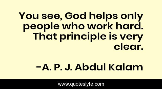 This page presents the quote "You see, God helps only people who work hard. That principle is very clear.". Author of this quote is A. P. J. Abdul Kalam. This quote is about god, work hard, people,.