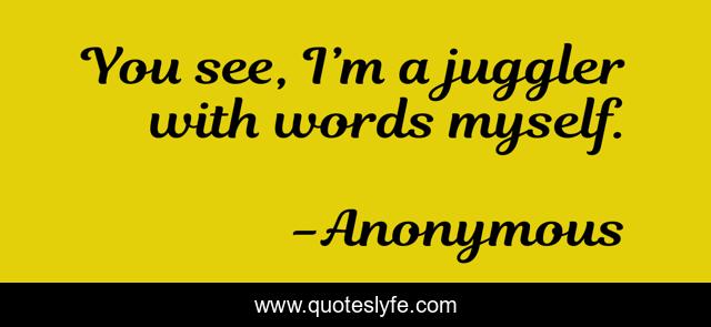 This page presents the quote "You see, I’m a juggler with words myself.". Author of this quote is Anonymous. This quote is about language, words,.