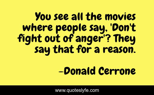 This page presents the quote "You see all the movies where people say, 'Don't fight out of anger'? They say that for a reason.". Author of this quote is Donald Cerrone. This quote is about movies, fight, people,.