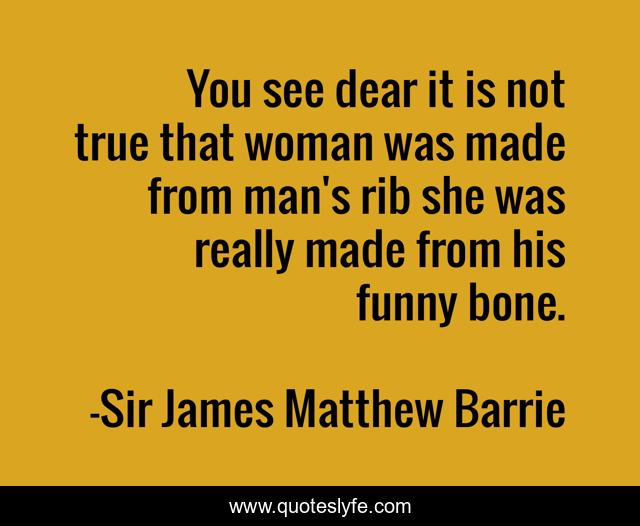 This page presents the quote "You see dear it is not true that woman was made from man's rib she was really made from his funny bone.". Author of this quote is Sir James Matthew Barrie. .