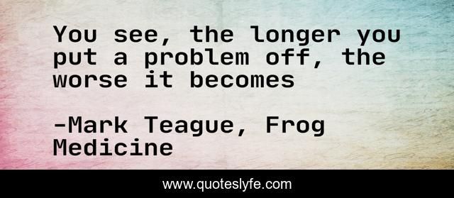 This page presents the quote "You see, the longer you put a problem off, the worse it becomes". Author of this quote is Mark Teague, Frog Medicine. .