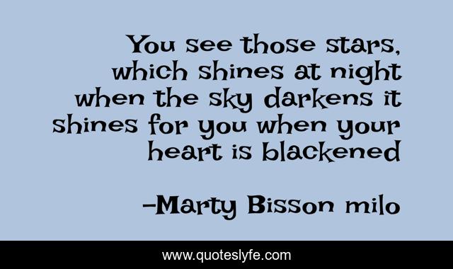 This page presents the quote "You see those stars, which shines at night when the sky darkens it shines for you when your heart is blackened". Author of this quote is Marty Bisson milo. This quote is about love, stars, affection, emotions,.