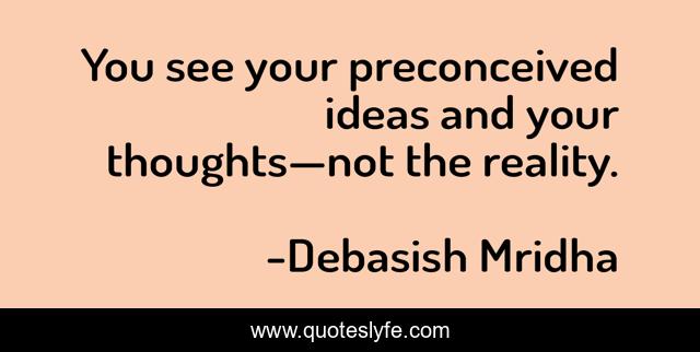 This page presents the quote "You see your preconceived ideas and your thoughts—not the reality.". Author of this quote is Debasish Mridha. This quote is about philosophy, debasish-mridha, reality, quotes, debasish-mridha-md, inspirational, enthusiasm, your-thoughts, preconceived-ideas,.