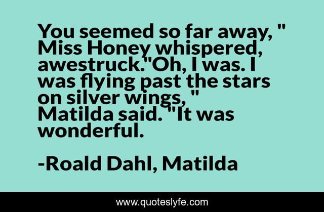 You seemed so far away, " Miss Honey whispered, awestruck."Oh, I was. I was flying past the stars on silver wings, " Matilda said. "It was wonderful.