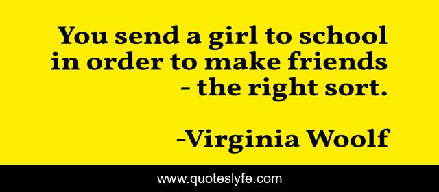 This page presents the quote "You send a girl to school in order to make friends - the right sort.". Author of this quote is Virginia Woolf. .
